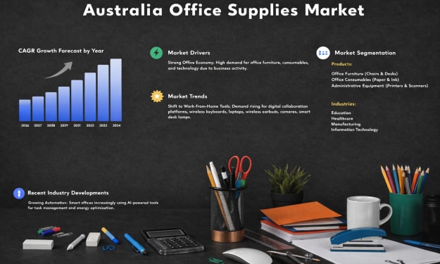 Australia Office Supplies Market: Sustainable Product Demand, E-Commerce Procurement Expansion & Hybrid Workplace Consumption. AI-Generated.