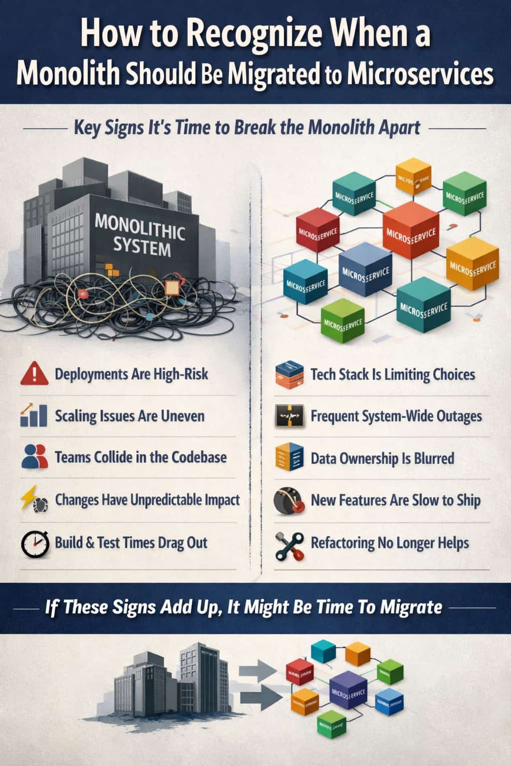 Recognizing when a monolith should be migrated to microservices requires discipline. The decision should be grounded in observable signals, not trends or assumptions.