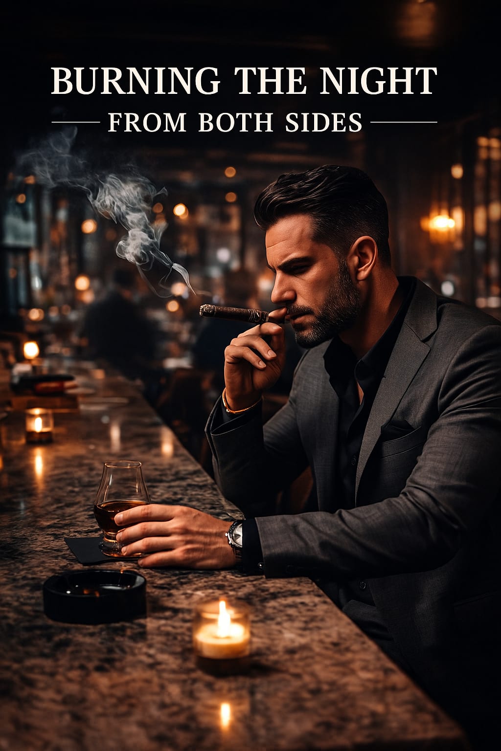 The jazz — that beat, that rhythm — everything I wanted. Pure orgasm for my ears. I split the heavy fabric drapes apart and a sharply dressed man pointed with his left hand toward the corner high-top table with a small burning candle. I felt at home. The seat was firm but reliable. I got myself another Old Fashioned. The waiter brought me a drink in one hand and an ashtray in the other. I knew I was at the right address. I had everything — cutter, proper lighter, even long-stick matches. I let the ritual begin.