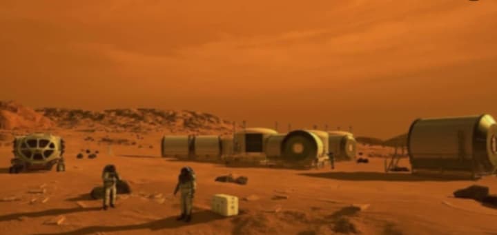 on the other hand, my great great grandmother, Victoria, was not so excited. Her pregnancy was hard, and she was sick almost every day. While she spent every day in her cramped bunk, miserable and unhappy, my great great grandfather, George, was running around, speaking to everyone, finding out what their specialty was, and how he could help them. He found out that the infrastructure of the colony was very basic and primitive, that robots were there already with a very small contingent of Space Force Guadians building more structures using CGI ( computer generated imagery) a new AI technology to design buildings, and then 3-D print build them with existing materials on the surface of Mars, in a very quick time frame.so that by the time the settlers arrived, there would be enough housing and warehouse space to proceed with a larger colony than they had anticipated. George found out the the buildings were all connected, and oxygen generators were installed, as were solor panels and wind turbines to generate electricity for the colony. Most of the colonists lives would be lived inside.
