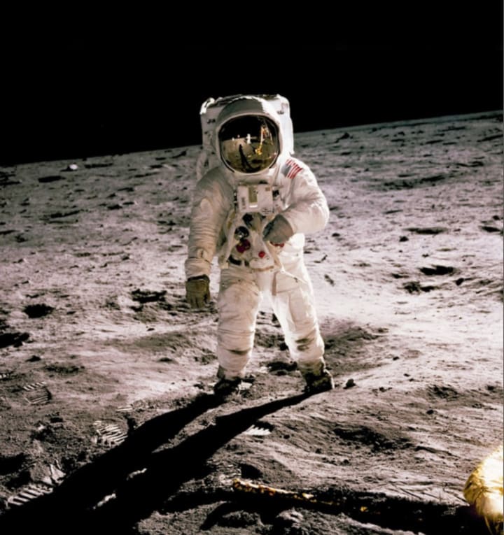 7 months later the team arrived, and placed in orbit around the moon, while the 6 members were shuttled down to the surface. For the first time they saw Earth, blue and white and so beautiful. They didn’t see green or brow. It was still in an ice age.