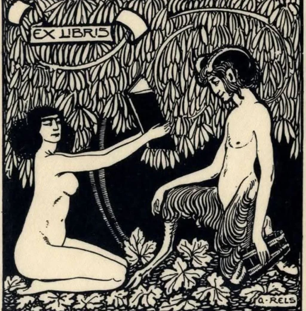"Satyr, Ex libris" for Georges Barbanson, created by Armand Rels, 1913.
