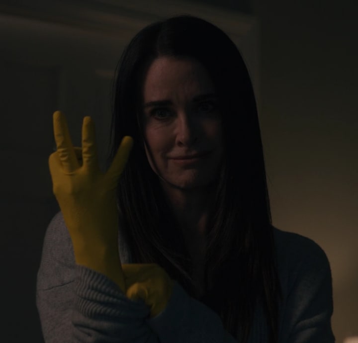 Kyle Richards played the hell out of Aubrey Hoffman; her well-to-do demeanor, her heel persona, and her demented insanity. Perfect actress to play this amazing villainess! I'm hoping that we see more Real Housewives franchise cast members as villainesses; I do have a dream list regarding Lifetime movies, but that's another story. Richards did play a Lifetime villainess once; she played Tricia Staunton in 2011's Deadly Sibling Rivalry.