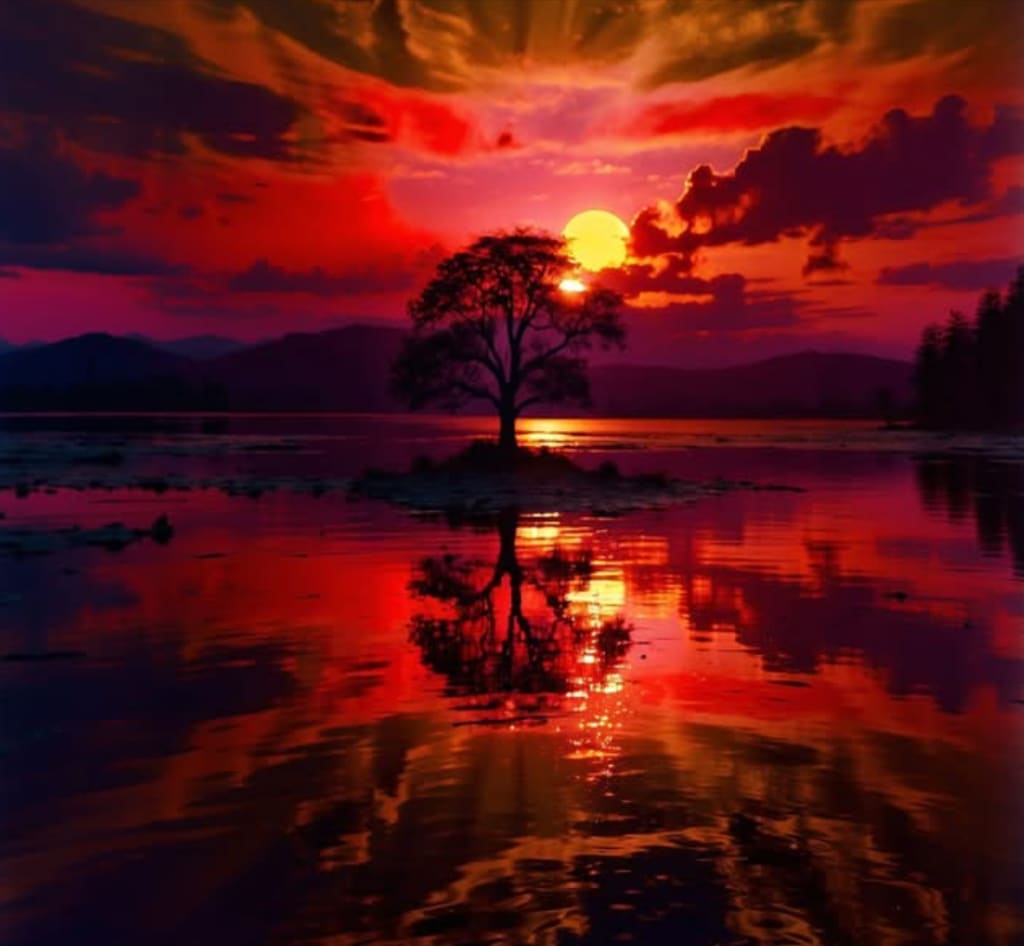 The fiery sky and the tranquil tree,