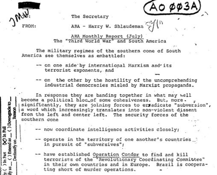 But then, Power asks you to stand, to give them your shirt. They spit in your face before walking past you. They don’t so much as glance over at you. They know that you know who you are ,and they know that you know who they are. The war is over; the people chose subservience over autonomy. They had no choice. French officers, fresh from napalming refugee camps in Algeria, were teaching the Triple A how to skin communist alive in secret networks of concentration camps. Union representatives for Ford, Mercedes-Benz, and other large companies were often detained inside the companies themselves and transferred to clandestine detention centers (CDC) in vehicles provided by these companies. To cut down on overhead, one of these companies had a doorway which connected their factory with a CDC that had been constructed as its own wing of the facility. The paramilitary death squad became the champions of liberal society. They stood for individual liberties by protecting their nations from nationalizing resources and land redistribution. They trafficked cocaine to the Americas for the sake of foreign interests. They tortured dissidents in empty football pitches for the sake of democracy.
